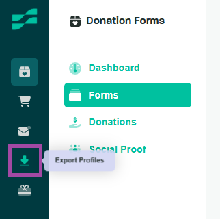 - To choose which donations should be included in the export, select a form from the Forms dropdown. Alternatively choose "All Forms" to include donations from any of your forms in your export.