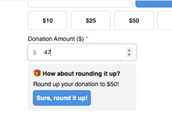 Boost donation totals with a gentle, strategic prompt after a donor selects their amount.