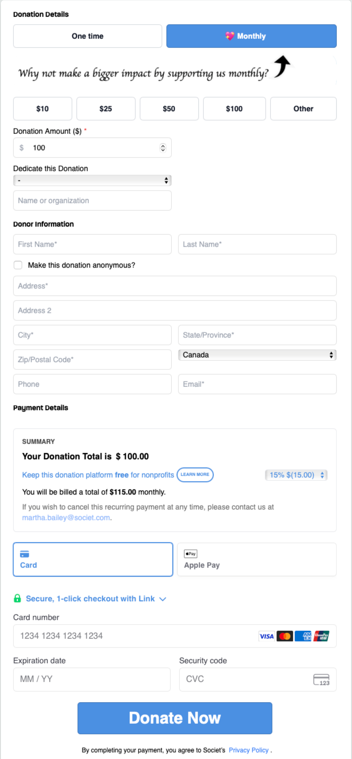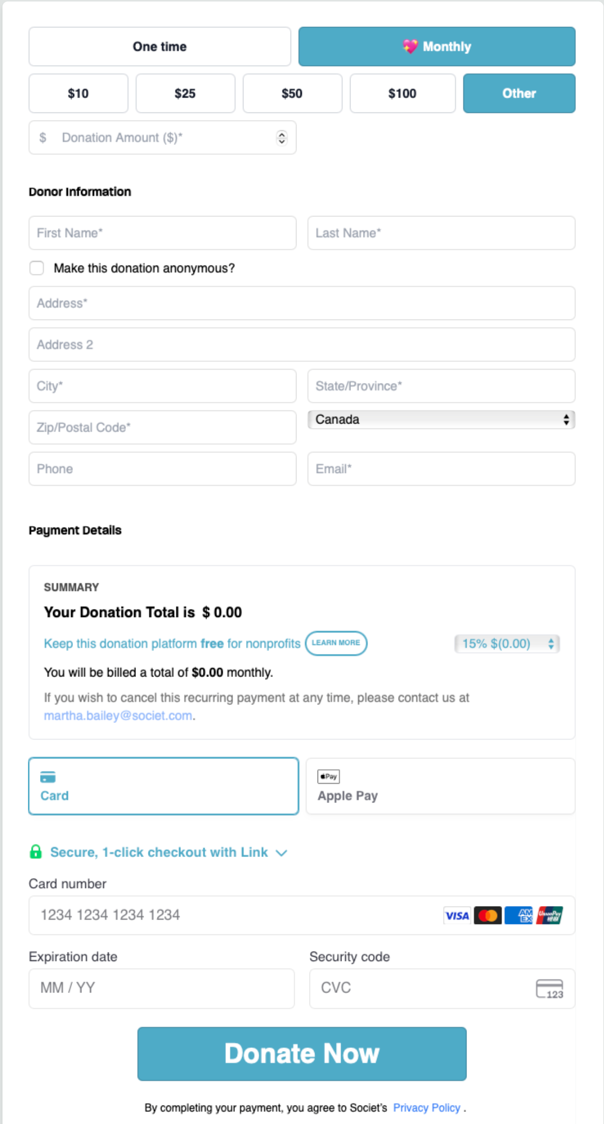 Now you can tailor your donation page with your nonprofit’s brand colours and fonts, giving donors a seamless and professional experience from start to finish.