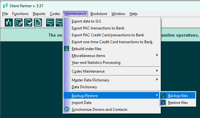 - Silent Partner backups are really easy to restore, so there is no need to contact your IT department.