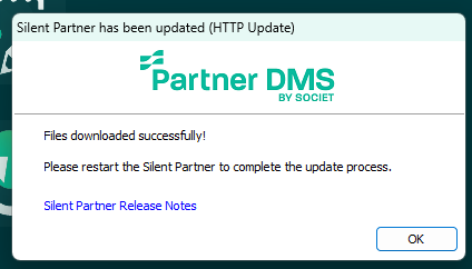 Click “Yes” to update the program. You’ll be prompted to restart Silent Partner to complete the update process.